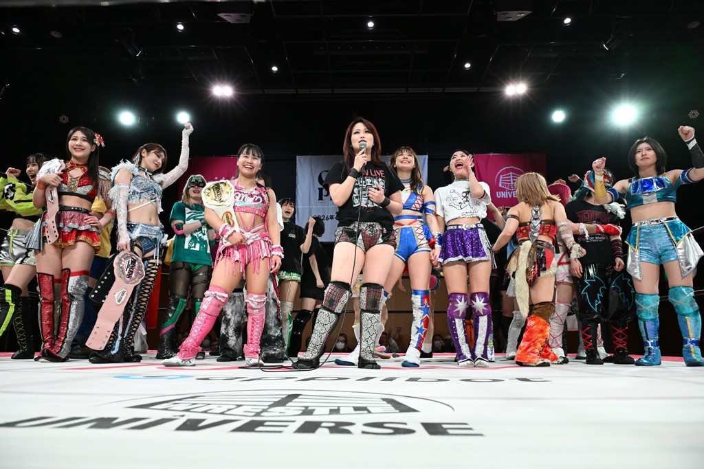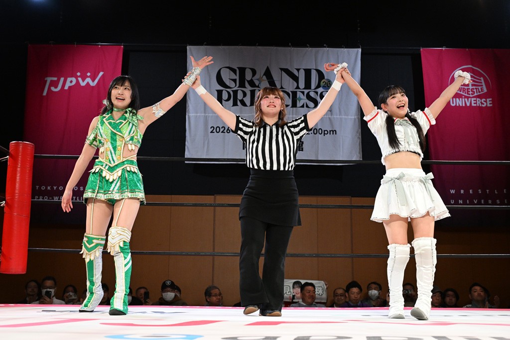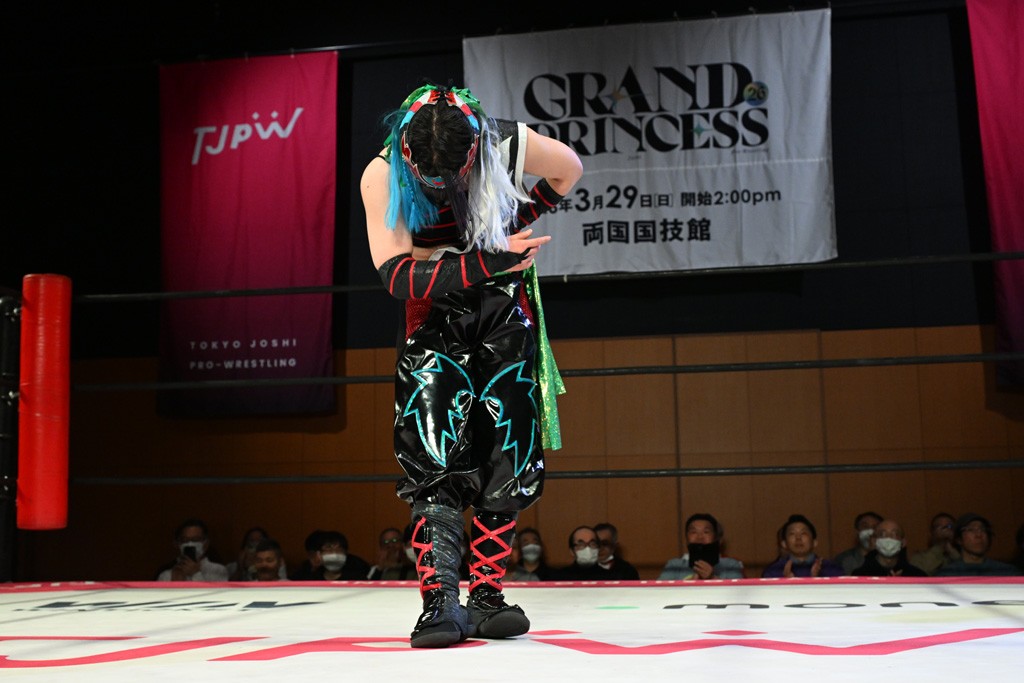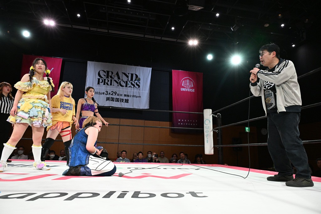試合後、未詩がマイクを取る。未詩「荒井ちゃん。荒井ちゃんと今こうやって、ここまでやりあえて、闘えあえてるのが本当に嬉しい。ここまで、高めあえる仲になるとは思わなかった。こんなにライバルみたいな関係に、ライバルになれるなんて思わなかった。本当に嬉しい。だから、今月の29日、すぐそこで私たちの最高の東京女子の最高の試合をしよう!」荒井「未詩さん。私は未詩さんの隣でデビューした5年前からずっと未詩さんのプロレス愛、東京女子プロレス愛を見て、ここまでそんな姿を見てここまで育ちました。そんな未詩さんにライバルって言葉をかけてもらえて、自分とっては嬉しくて。でも、まだできると思ってます荒井。だから、これからもっと荒井のことが気になって気になって、しょうがなくなっちゃうような、未詩さんにとって、東京女子にとって、みんなにとって、そんな大きな存在になれるように、両国国技館、荒井、とっても気合い入れてその日行くので、未詩さんと戦えるのをとても楽しみにしてます。ライバルとしてのスタート。荒井の勝ちから始めます。お願いします!」未詩「そうしよう。両国国技館をライバルとしてのスタートにしよう。私が勝ちます! それでは今日は、日本で両国前最後の試合ですよね? 両国前最後の日本での試合なので、みんなに出てきてもらいたいなと思います。アメリカはあるけどね、両国KFCで両国国技館に向けてみんなで気合い入れましょう」全選手登場してリングイン。未詩「みんなちゃんと中入って。みんなちゃんと中入って。みんな下がったということで、リーダー」山下「みなさんいよいよ次が両国国技館です。みなさん心の準備できてますか? もっと! 準備できてますか? 私たちが両国国技館、このリングでやることは一つです。みなさん見ててください。応援よろしくお願いします。 最後にみなさん声出して心を一つにしましょう。 私が行くぞって言ったら、おーって言ってください。 拳つき上げて、おーって。 分かった? みんな立つ? 立てる人。みんな立っちゃおうよ。ありがとう。みんなもおーね。行くぞって言ったらおー。準備できてる? みんな。3月29日、私たちの戦いでみんなを幸せにします。 両国国技館、行くぞー!」