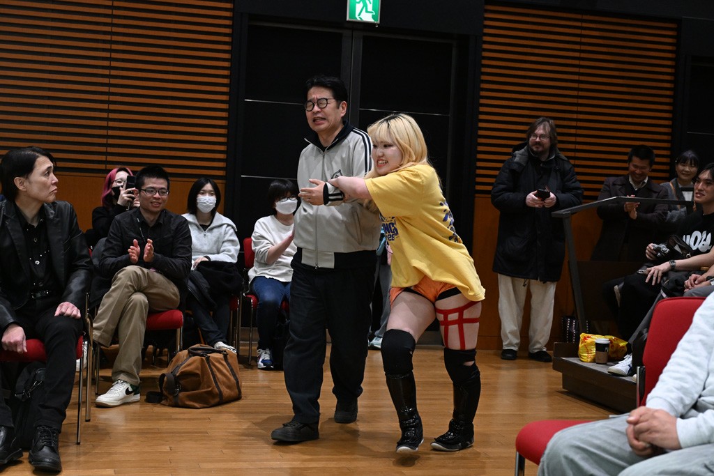 受付業務をしていた現アイアンマン王者・今林が宣戦布告「東京女子の両国には俺がチャンピオンとしてリングに上がってやるよ! これは DDTと東京女子プロレスの全面戦争だ!」