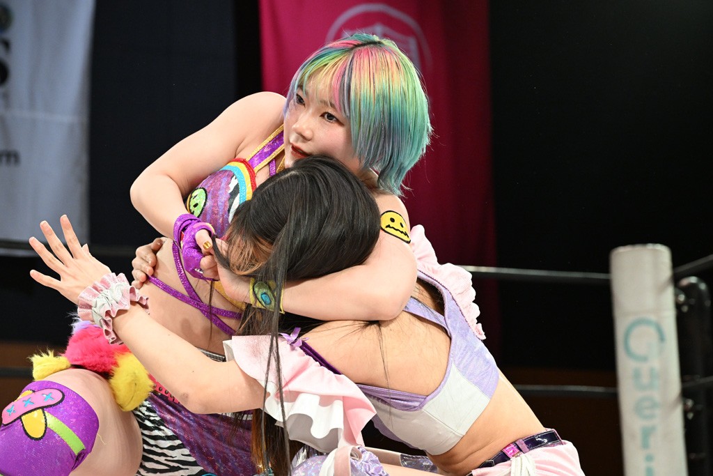 荒井 日本での前哨戦最後、両国前最後の大会でした。今日はちょっと時間内に決着つけることができなかったんですけど、でも最後まで未詩さんといっぱい闘えて。未詩さんからもライバルって思ってもらえる存在になれてることが、言葉でも試合の中でも、1回目の前哨戦よりもとても感じてすごい嬉しくなったし。ライバルって言ってもらったからには、自分もそう思ったからには、もっと覚悟持って未詩さんに負けない愛で突き進んでいきたいなとあらためて思いました。両国、荒井の勝ちからライバルストーリーが始まるということで、頑張ります!