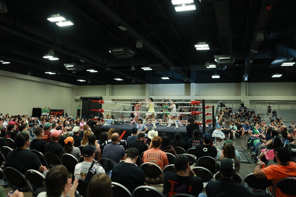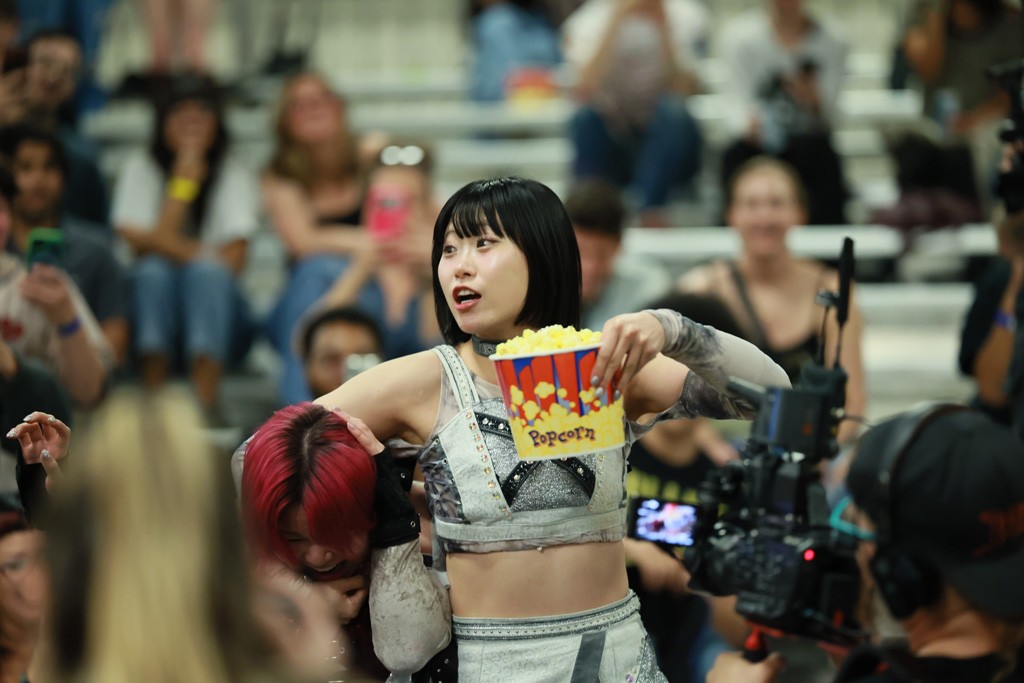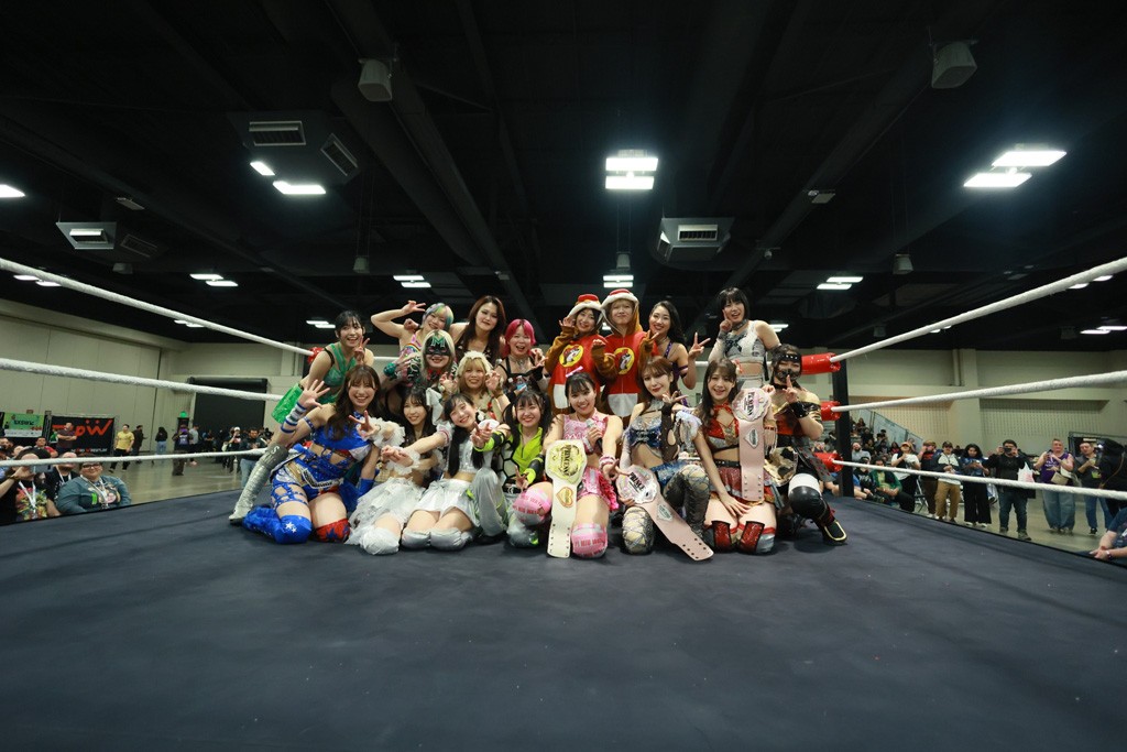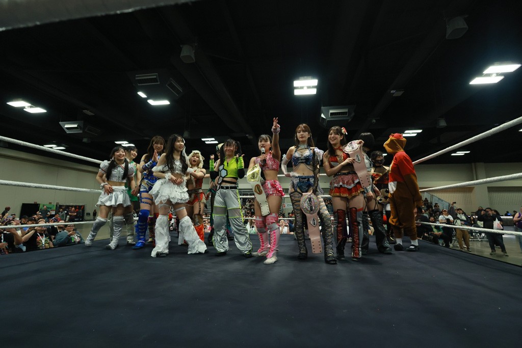 試合後は未詩と鈴芽がマイク。未詩「オースティン、2日間めちゃくちゃ楽しかったでーす。2日間ともにこんだけたくさん来てくれて嬉しかったです!」鈴芽「アイ・ラブ・テキサス! センキュー・ソー・マッチ!」未詩「(特典会の連絡をして)今日はオースティン2日間、ラストということで、選手みんな出てきてください。(『アーリガート』チャントの中、全選手がリングイン)TJPWのテキサスメンバーが揃ったということで、このオースティン2日間ありがとうございました。このあと2日空いてダラス、ヒューストンと大会あるので、配信もあるのでみなさん来て下さい。みなさん、写真撮ります(全選手で記念撮影)OK、センキュー! ということで、オースティン、2日間ありがとうございました!」