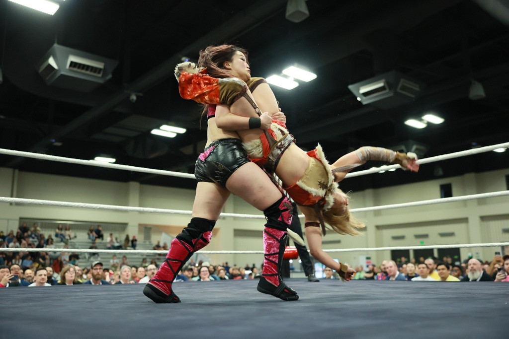 ゴングが鳴って2人がロックアップ。離れた両者がエルボー合戦。リカが制して突進するも、ユキがショルダータックルのカウンターを浴びせ、セントーンで追撃。串刺し攻撃はかわしたリカがセカンドロープに足を引っ掛けてドロップキック。場外戦を誘ったリカがバッキーコールを求めながら、場外乱闘を開始。場外でボディースラム狙ったユキを阻止したリカがヒップアタック。ユキをひな壇席に連れていくと、観客のペットボトルで一撃。さらに売店でポップコーンをゲットしたリカがスティールステップにユキを座らせて自らポップコーンを頬張る。ユキにも強引に口の中に放り込んで突進。かわされてしまうも、リカが張り手で一撃するとユキの口の中のポップコーンが客席へ飛び散る。スティールステップからダイブしてヒップアタックで追撃。リングに戻ってカバーはカウント2。ここでお互いが給水。ユキがカウンターのショルダータックルで反撃すると、ストマックブロックからセカンドロープ・セントーン。カウント2。コーナーダイブはかわしたリカがヒップアタック。ドラゴン・バックブリーカーからスリーパー。立ち上がったユキをコーナーに押し込んで串刺しエルボー。ロープ際の攻防となってユキがトップロープ越しのサイドスープレックスを決めて場内を沸かす。さらにショルダータックルからブルドッキングヘッドロック。ヴィーナスDDTは丸め込まれて不発となるが、ショルダータックルを決めていく。追撃は阻止したリカが低空ドロップキックからランニング・ヒップアタック。カウント2。2発目は阻止したユキがヴィーナスDDTから愛と炎のフルネルソンで捕獲。これを投げてリカが脱するとドラゴンスリーパーへ。回転しながらホワイトドラゴンスリーパーに移行すると、たまらずユキがタップアウトした。