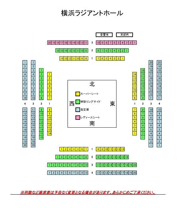 座席図は現在の予定です。当日、列数などが変更される場合がございます。予めご了承の上、チケットをご購入ください。