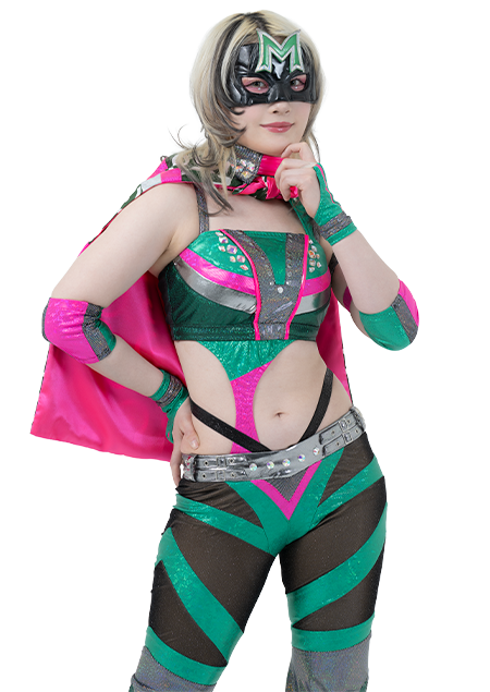 東京女子プロレスの愛と平和を守るニューヒーロー。試合前の長いマイクパフォーマンスとズル賢いファイトが持ち味。プロデュース興行「HYPE!」は2023年5月、2024年4月、2025年6月と3回おこない高評価を得ている。中島翔子とのタッグ「享楽共鳴」では明るく、楽しく、激しいプロレスを展開中。昨年はプリンセスタッグ王座もコンビとして初めて腰に巻いた。
